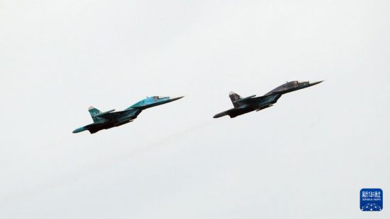 这是9月15日在白俄罗斯明斯克州拍摄的俄白“西部-2025”联合战略演习现场的战机。新华社发(任科夫摄)