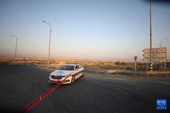9月18日,警察封锁约旦河西岸地区与约旦交界处艾伦比桥陆路口岸附近的袭击现场。新华社发(贾马尔·阿瓦德摄)