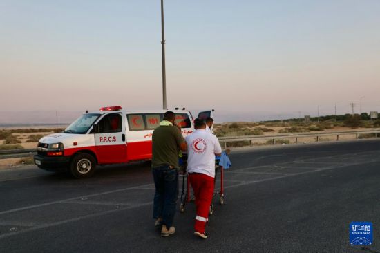 9月18日,急救人员在约旦河西岸地区与约旦交界处艾伦比桥陆路口岸附近的袭击现场开展工作。新华社发(贾马尔·阿瓦德摄)