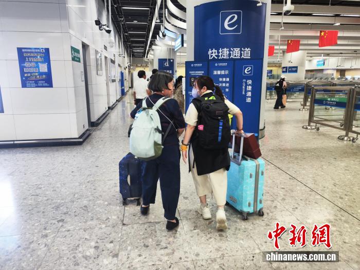 香港游客彭女士、郑女士准备搭乘广深港列车前往广州。中新网 刘越 摄