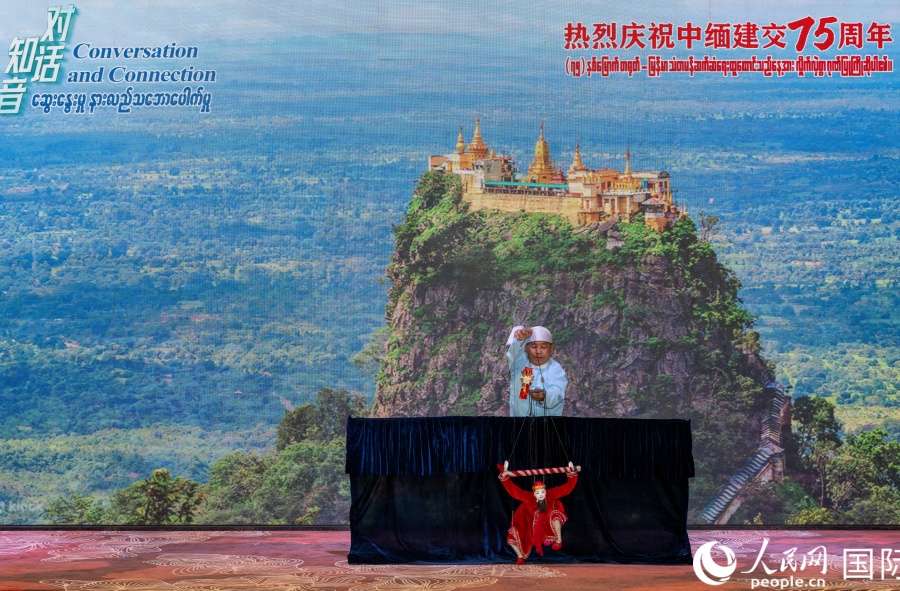 缅甸艺术家在活动中表演缅甸传统艺术木偶戏。人民网 记者谢佳君摄
