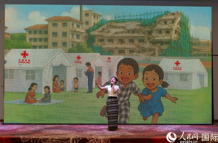 缅甸学生在活动中表演诗朗诵《谢谢你!中国》。人民网 记者谢佳君摄