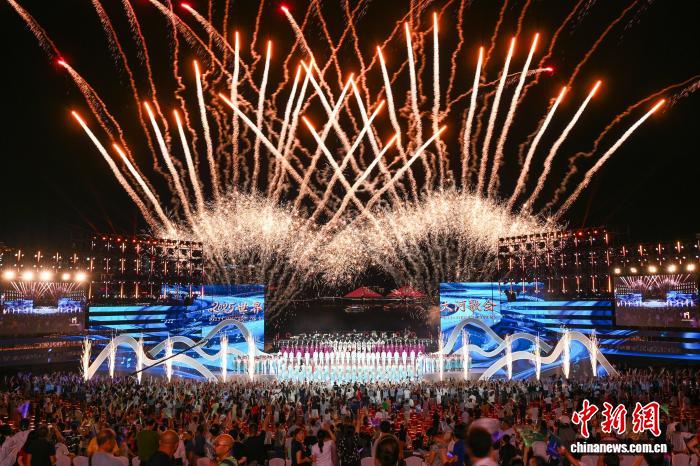 9月18日晚,2025世界大河歌会在长江之畔的重庆市万州区举行。作为2025长江文明论坛重要活动之一,本届大河歌会以“沉浸式互动+国际化表达”为核心,采用开放式舞台设计,将江面游轮、沿岸景观纳入表演空间,来自国内外的知名艺术家通过大型歌舞、川剧、交响乐等形式,展现大河文明的深厚底蕴与时代风采。图为中俄艺术家共同演奏《友谊地久天长》。中新社记者 何蓬磊 摄