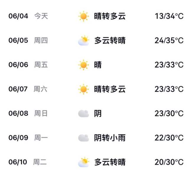 高考期间天气预报显示,6月4日至6日,大兴区天气晴到多云,其中4日至5日气温较高,晴晒炎热,5日最高气温可达36℃左右。6月7日至10日高考期间,8日至10日天空云量较多,8日和9日傍晚至夜间有阵雨或雷阵雨天气。此期间能见度较好,白天气温在30至33℃之间,夜间最低气温为21至22℃。