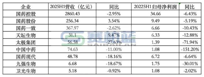 截至目前,国药集团旗下国药控股、国药股份、国药一致、天坛生物、太极集团、中国中药、国药现代、九强生物、卫光生物9家上市公司,均已公布2025年上半年业绩。