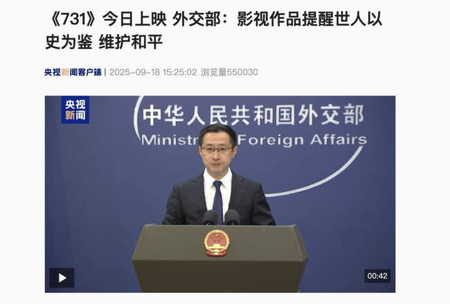 9月18日,外交部发言人林剑主持例行记者会。有记者就《731》电影上映提问。