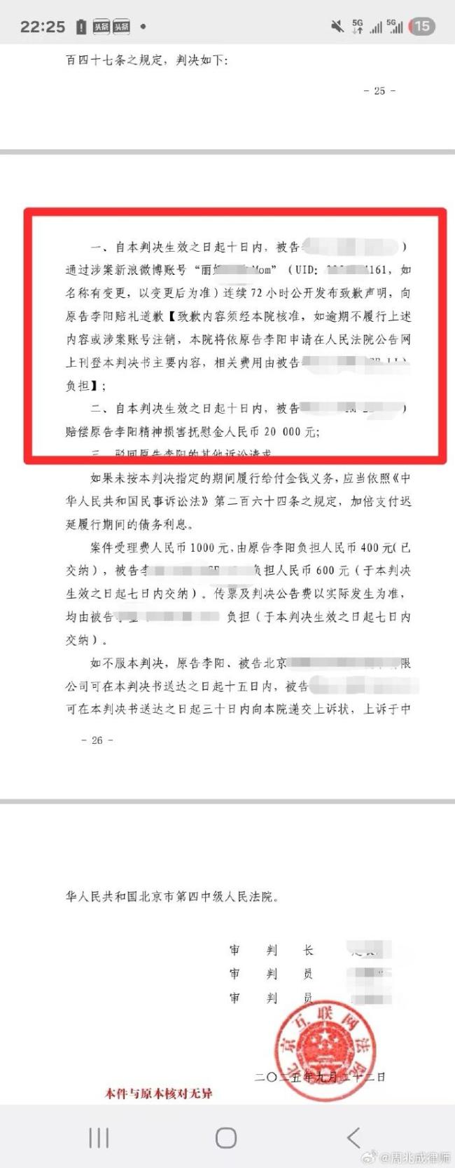 此外,判决还要求李阳前妻在涉案账号连续72小时发布《致歉声明》,并支付精神损害抚慰金,这对李阳的精神伤害是一种实质性的慰藉。尽管金额有限,但这是法律对其精神痛苦的认可,明确表明李阳的伤害并非“公众人物应承受的监督”,而是他人违法侵权的结果,帮助他逐步走出舆论阴影。