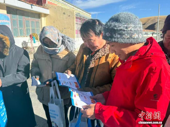 资料图为民政工作人员宣讲临时救助政策。青海省民政厅供图