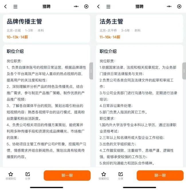 相关消息曝光后不久,有媒体发现上述两个岗位已下线。