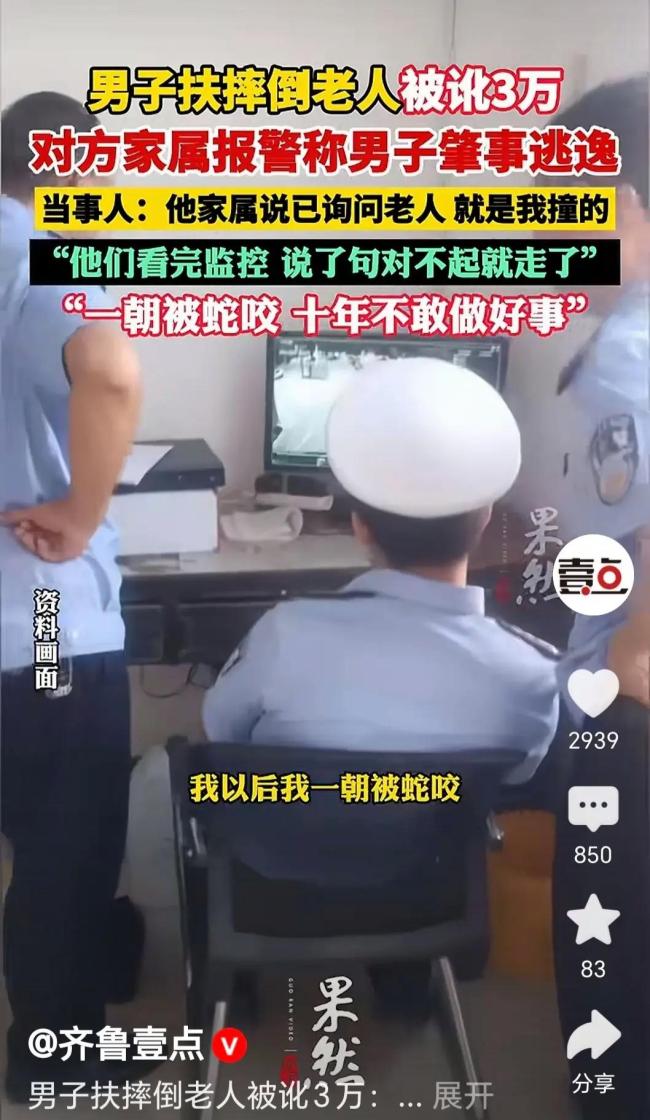 扶老人反被讹 不能止于“道歉”了事 善意需法律保护!湖南桃源的尹先生带孩子去医院看病时,好心扶起摔倒的老人,却被家属指责为“肇事逃逸”。顶着十多天的精神压力,尹先生最终找到隐蔽监控证明电动车与老人自行车无接触。交警核实后,家属才道歉了事。这件事再次引发了关于“扶老人怕被讹”的社会讨论。